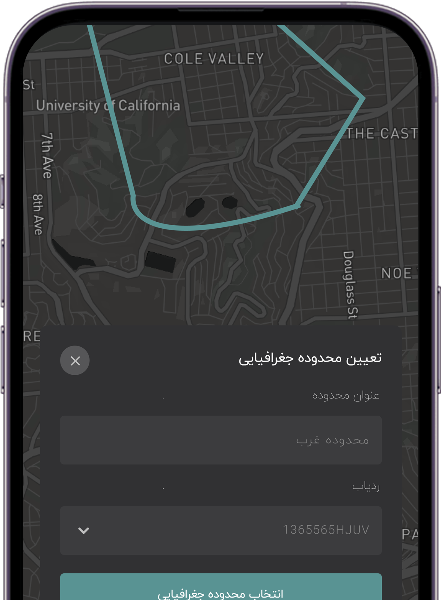 میتوانید با ترسیم محدوده جغرافیایی مورد نظر روی نقشه، در صورت ورود یا خروج ردیاب از آن محدوده، از طریق نوتیفیکیشن مطلع گردید.