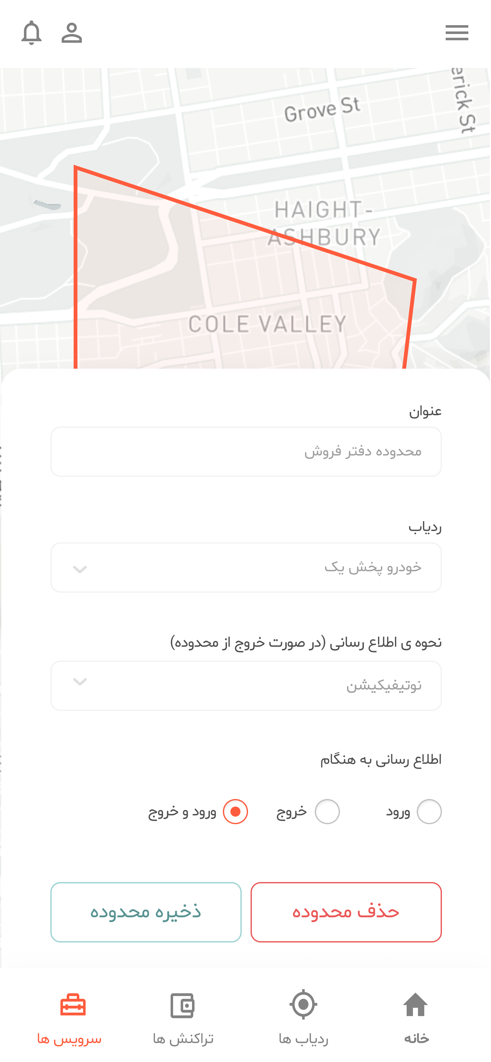 امکان کسب اطلاع در صورت ورود و یا خروج ردیاب از محدودههای تعیین شده.